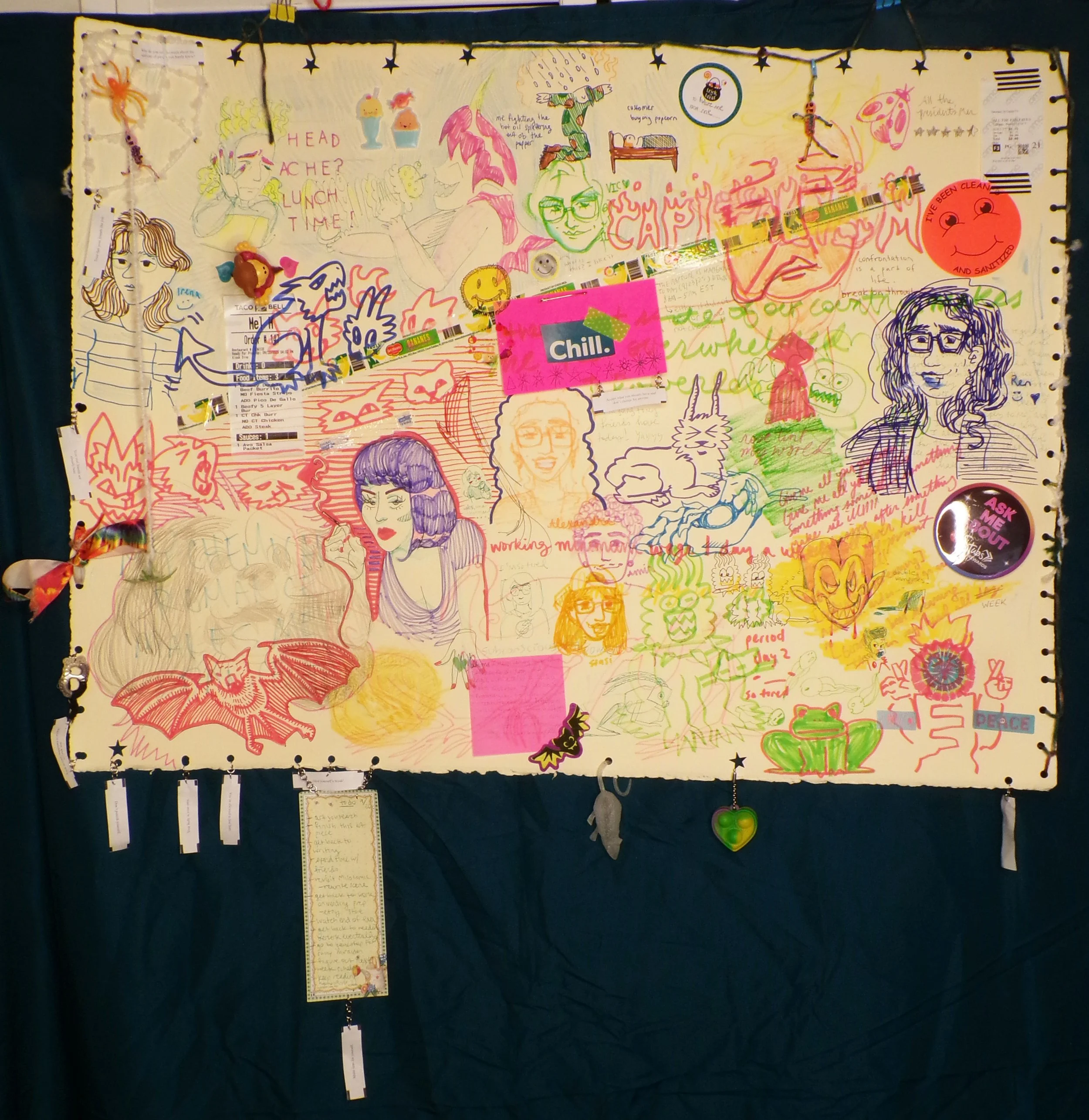When creating my artwork "The Irreplaceable Human Soul," I considered what types of art can only be created by humans and not by artificial intelligence. No matter how well AI can imitate artists, it will never have emotions – it only copies what it sees us do. I drew and wrote from the heart and worked in overlapping layers to convey emotional depth. I treated the paper like my personal sketchbook by adding stickers, pins, and 3-D objects from my daily life. Also included are illustrations of my closest friends, to-do lists, and custom fortunes that I created as positive reminders for myself. This is me, in the current moment, on paper. The capabilities of AI are improving rapidly, and if artists do not adapt, we will be out of a career. AI can create digital paintings, but it will never be able to replicate the emotional nuances of the human soul.